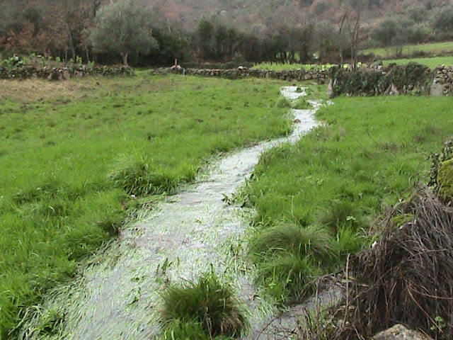 | Rego de água que vem do Picoto ("Regueiral"), atravessando um lameiro junto ao antigo moinho! |